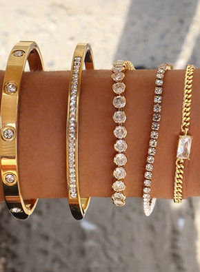 Our jewelry is crafted from high-quality materials, offered in two primary types: 14k gold/silver plated over brass, or 18k gold/silver plated over stainless steel. To ensure lasting shine, we add an extra layer of anti-tarnish coating to prolong the life of your pieces. While our jewelry is designed for longevity, all plated jewelry can experience some natural tarnishing over time.